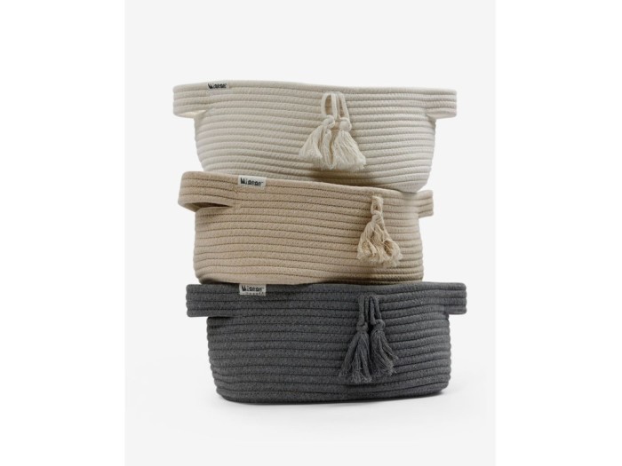Minene Μικρό Καλάθι Ανθρακί κατασκευασμένο από βαμβακερό σχοινί. Φυσικό καλάθι αποθήκευσης με χερούλια διακοσμημένο με φούντες, από 100% ποιοτικό βαμβάκι.