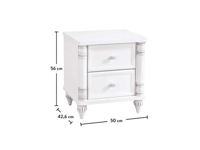 παιδικό κομοδίνο της σειράς Romantic το κομοδίνο ολοκληρώνει το κρεβάτι και του προσφέρει τον επιπλέον χώρο που χρειάζεται για να μπορεί το παιδί να διαβάσει το βράδυ ένα βιβλίο ή να έχει ένα νεράκι δίπλα του