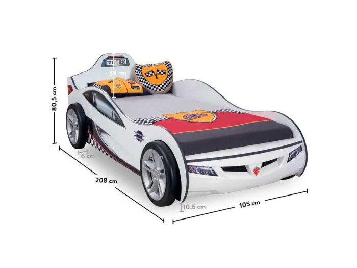 Παιδικό κρεβάτι αυτοκίνητο της σειράς Champion Racer σε λευκό χρώμα. Οι σχεδιαστές της Cilek μοιάζει να συνεργάστηκαν στενά με τους σχεδιαστές των μεγάλων εταιρειών της Φόρμουλας 1 για την δημιουργία αυτού του κρεβατιού. Ο τρισδιάστατος προφυλακτήρας, οι ρόδες, οι ζάντες, η πινακίδα, τα φώτα και οι σημαίες της φόρμουλας δίνουν την αίσθηση ενός αληθινού αγωνιστικού αυτοκινήτου. … Και όμως είναι κρεβάτι.