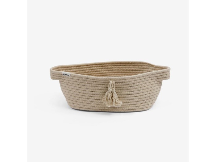 Minene Μικρό Καλάθι Μπεζ κατασκευασμένο από βαμβακερό σχοινί. Φυσικό καλάθι αποθήκευσης με χερούλια διακοσμημένο με φούντες, από 100% ποιοτικό βαμβάκι.