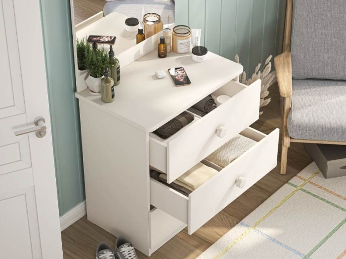 Ξεχωρίζει για την άφθονη χωρητικότητα αποθήκευσης που διαθέτει, η συρταριέρα Varia διαθέτει τρία συρτάρια, επιτρέποντάς σας να αποθηκεύετε με τάξη τα ρούχα, τα αξεσουάρ και τα προσωπικά σας αντικείμενα. Το στιβαρό πλαίσιο και η ασφαλής επιτοίχια βάση της εξασφαλίζουν αξιόπιστη χρήση.