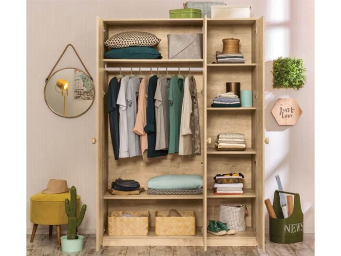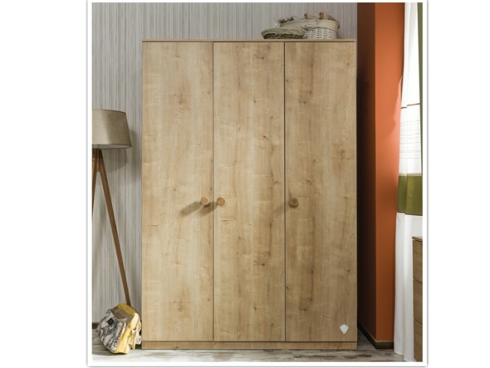 Παιδική ντουλάπα 3 φύλλα της σειράς MOCHA σε φυσικές αποχρώσεις του ξύλου