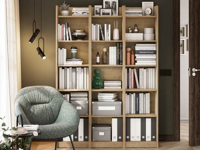 Η ανοιχτή βιβλιοθήκη Mocha, με τις μοντέρνες γραμμές και την υφή του φυσικού ξύλου, προσθέτει ζεστασιά στο σπίτι σας, συνδυάζοντας τάξη και αισθητική. Τα φαρδιά ράφια της σάς επιτρέπουν να τοποθετήσετε εύκολα τα βιβλία, τα διακοσμητικά αντικείμενα και τα προσωπικά σας αντικείμενα, δημιουργώντας μια ευρύχωρη αίσθηση στον χώρο σας.