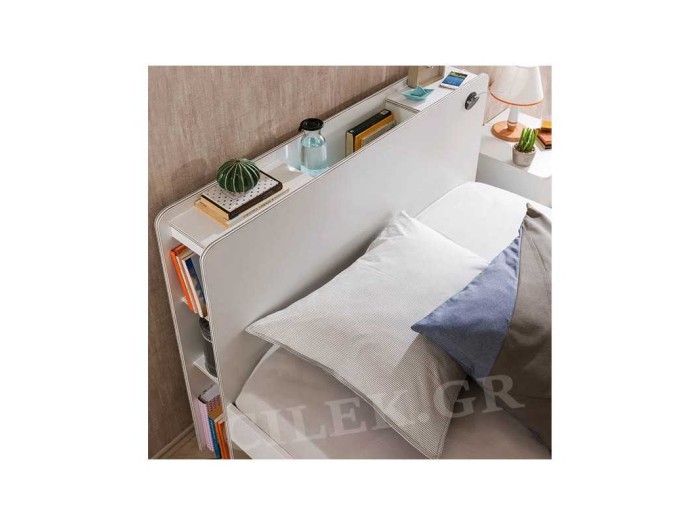Παιδικό κρεβάτι της σειράς white , το μοναδικό εφηβικό κρεβάτι που διαθέτει φόρτιση κινητού στο κεφαλάρι και θέσεις για μικροαντικείμενα πάνω στο κεφαλάρι. Το πιο ξεχωριστό κρεβάτι με μοντέρνα αισθητική, με στοιχεία πολυτέλειας, άνεσης με έμφαση στις λεπτομέρειες και το design. Μια νέα πρόταση σε λευκό χρώμα για αγόρια και κορίτσια που θέλουν ένα μίνιμαλ δωμάτιο μοντέρνο και λειτουργικό.