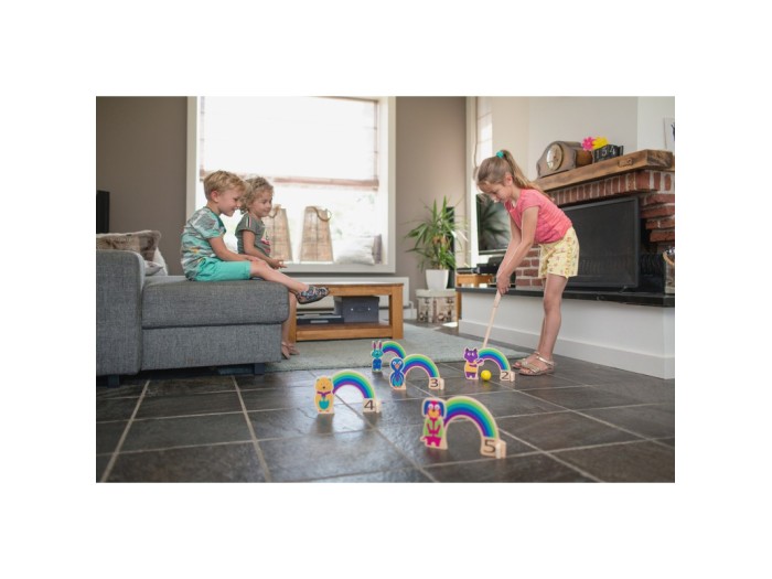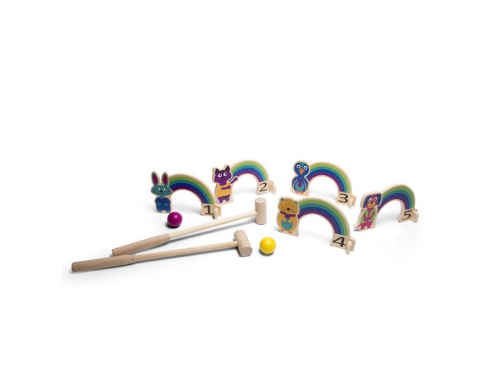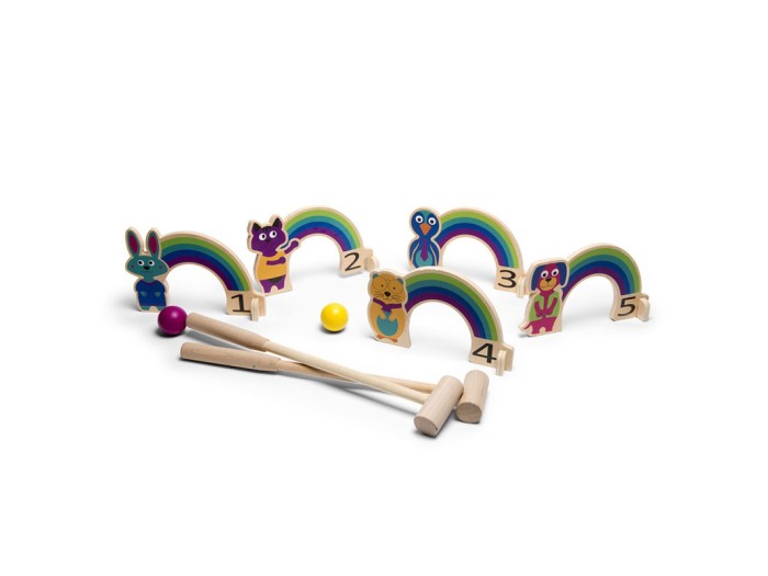 Ένα παιχνίδι δράσης αλλά και συγκέντρωσης! Τοποθετήστε τις αψίδες στο έδαφος, αφήνοντας κενό μεταξύ τους. Οι παίκτες πρέπει να χτυπήσουν την μπαλίτσα με το ξύλινο σφυρί και να καταφέρουν να περάσει μέσα από τις αψίδες. Ο παίκτης που θα καταφέρει να περάσει την μπαλίτσα του, μέσα από όλα τα ουράνια τόξα, με τα λιγότερα χτυπήματα, κερδίζει το παιχνίδι.