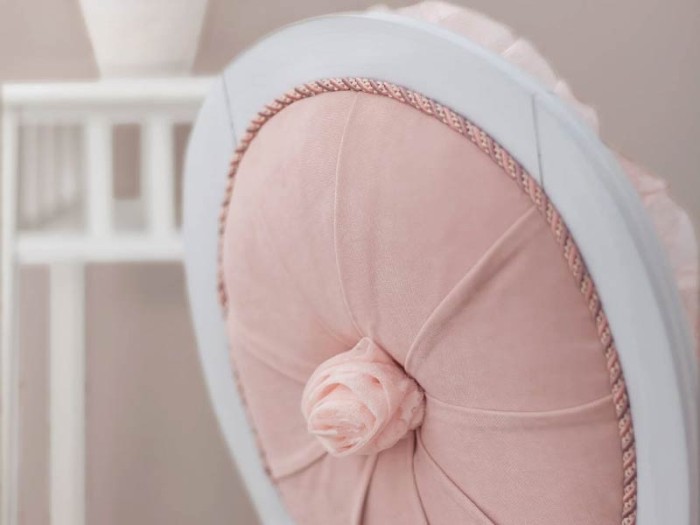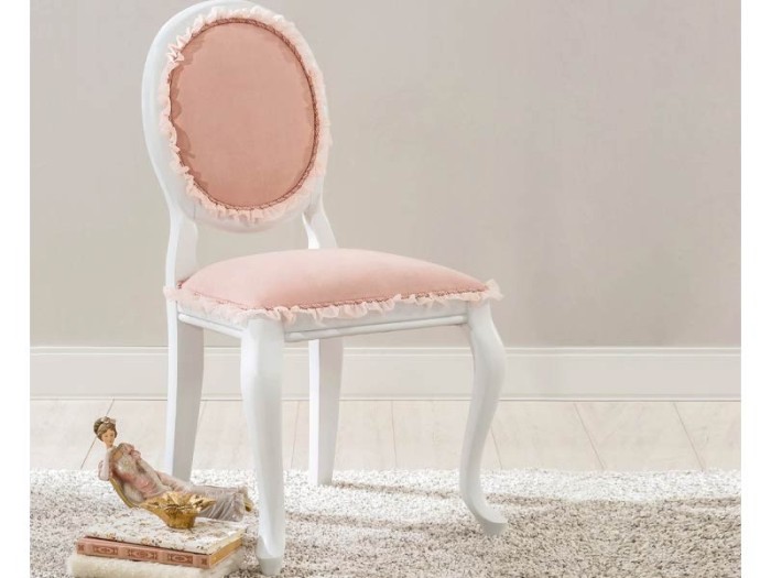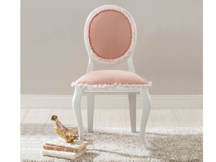 Παιδική καρέκλα γραφείου σταθερή με ύφασμα σωμόν χρώματος .