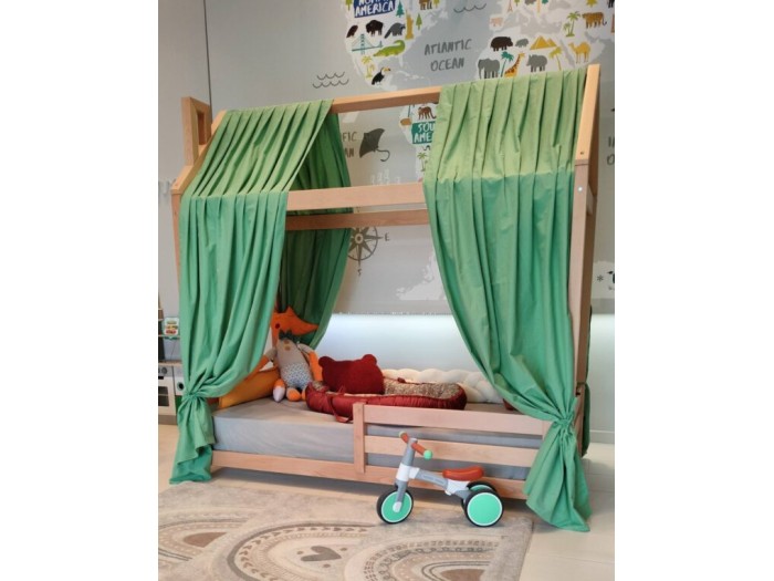 Σύμφωνα με τη Μοντεσσοριανή φιλοσοφία το παιδί θα πρέπει από πολύ μικρή ηλικία να αναπτυχθεί μόνο του. Έτσι και το παιδικό κρεβάτι θα πρέπει να είναι κατασκευασμένο σε τέτοιο ύψος όπου δε θα χρειάζεται τη βοήθεια του γονέα για να το ανεβάσει ή να το κατεβάσει από αυτό. Το κρεβάτι Luna είναι βασισμένο στη φιλοσοφία της σχολής montessori με το ύψος του στρώματος να φτάνει στα 24 εκ.- Η όλη κατασκευή είναι από μασίφ ξύλο οξιάς και βαμμένο με οικολογικές βαφές νερού. Η σκεπή του δίνει τη μορφή σπιτιού με τη διακοσμητική καμινάδα να το κάνει ακόμη πιο παιδικό.