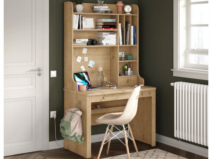 Το Mocha High Desk προσθέτει κομψότητα και οργάνωση στο δωμάτιό σας με την υφή του φυσικού ξύλου και τον λειτουργικό σχεδιασμό του. Τα ράφια και οι θήκες στο πάνω μέρος σάς επιτρέπουν να οργανώνετε εύκολα τα βιβλία και τα αντικείμενά σας, ενώ ο ευρύχωρος χώρος εργασίας σας επιτρέπει να απολαμβάνετε άνεση κατά τη διάρκεια της μελέτης ή της εργασίας. Η στιβαρή κατασκευή του το καθιστά ιδανική επιλογή για χρόνια αξιόπιστης χρήσης.