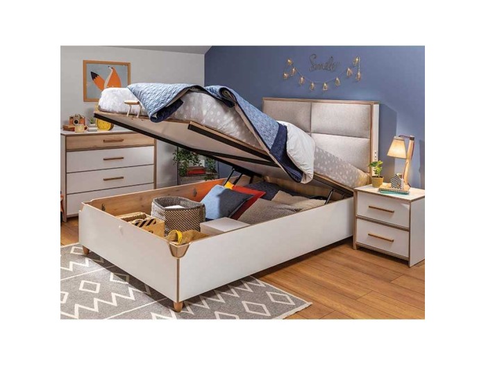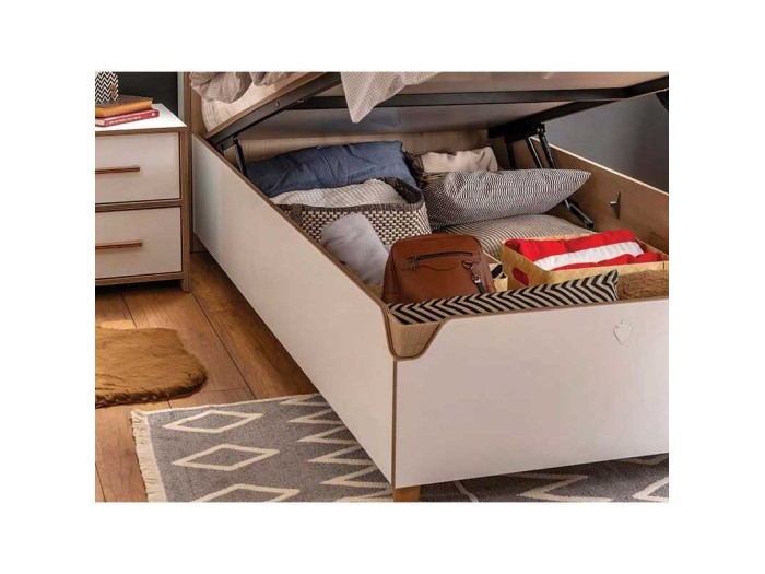 Ανακαλύψτε το παιδικό κρεβάτι με αποθηκευτικό χώρο, την πιο έξυπνη επιλογή για κάθε μοντέρνο παιδικό δωμάτιο!Με έναν μηχανισμό ανύψωσης που αποκαλύπτει έναν ευρύχωρο χώρο κάτω από το στρώμα, μπορείτε εύκολα να αποθηκεύσετε λευκά είδη, κουβέρτες, εποχιακά ρούχα ή παιχνίδια, κρατώντας το δωμάτιο πάντα τακτοποιημένο.