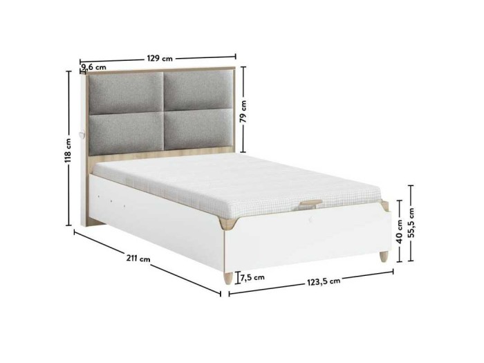 Το κρεβάτι δέχεται στρώμα 1,20 Χ 2,00, στην τιμή δεν συμπεριλαμβάνεται το στρώμα