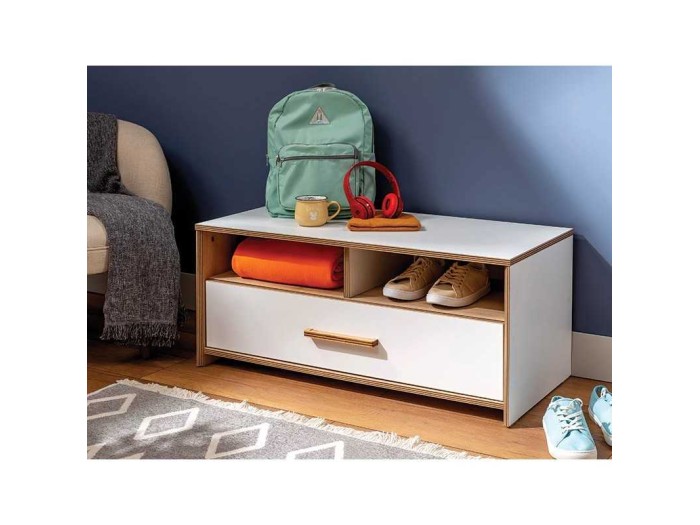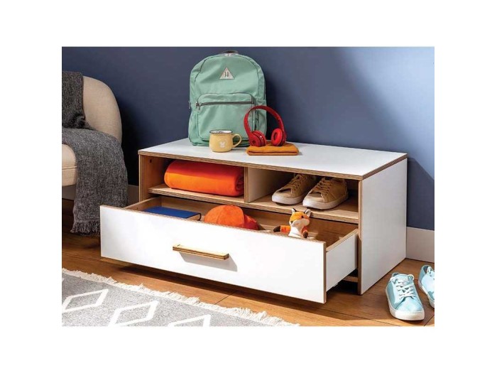 Ένα ξεχωριστό σκαμπό για το δωμάτιο των παιδιών, με συρτάρι και ράφια για αποθηκευτικούς χώρους,