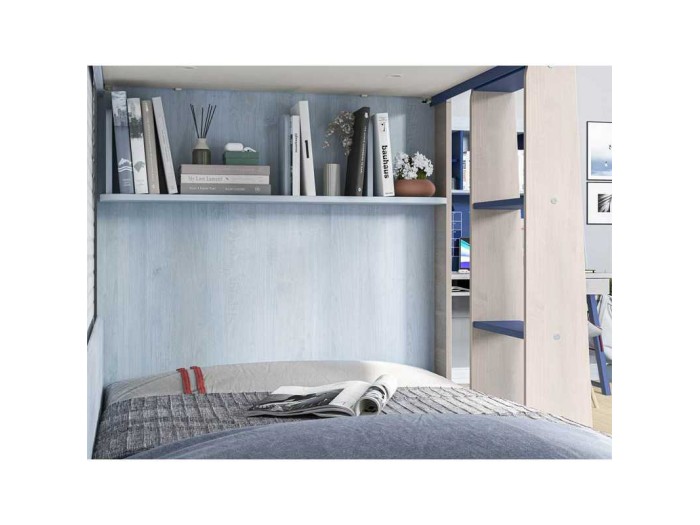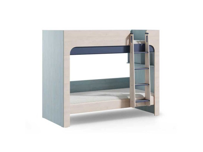 Η παιδική κουκέτα συνδυάζει λειτουργικότητα και μοντέρνο design, προσφέροντας δύο άνετα μονά κρεβάτια για αδέλφια ή φίλους.Στο εσωτερικό της διαθέτει πρακτικά ράφια, όπου το παιδί μπορεί να τοποθετήσει τα αγαπημένα του βιβλία, παιχνίδια ή προσωπικά αντικείμενα, διατηρώντας το χώρο του οργανωμένο.
