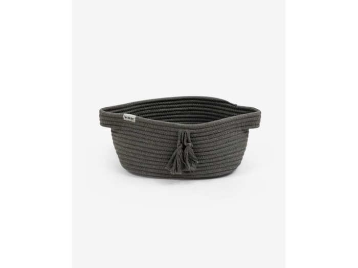 Minene Μικρό Καλάθι Ανθρακί κατασκευασμένο από βαμβακερό σχοινί. Φυσικό καλάθι αποθήκευσης με χερούλια διακοσμημένο με φούντες, από 100% ποιοτικό βαμβάκι.