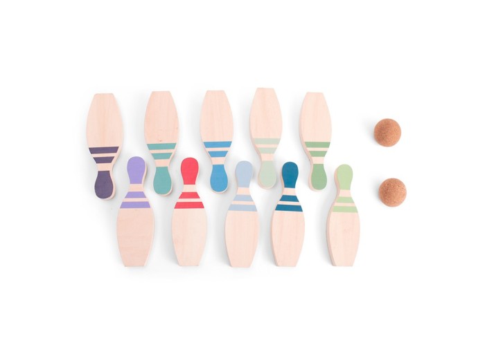 Ένα υπέροχο σετ μπόουλινγκ από ξύλο και φελλό, με αριθμούς για να παίζουν και να μαθαίνουν τα μικρά παιδιά. Με χαρούμενα χρώματα και μοναδικό σχεδιασμό που μπορείτε να διακοσμήσετε ακόμα και το παιδικό δωμάτιο.