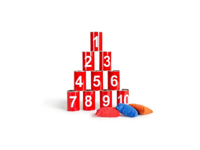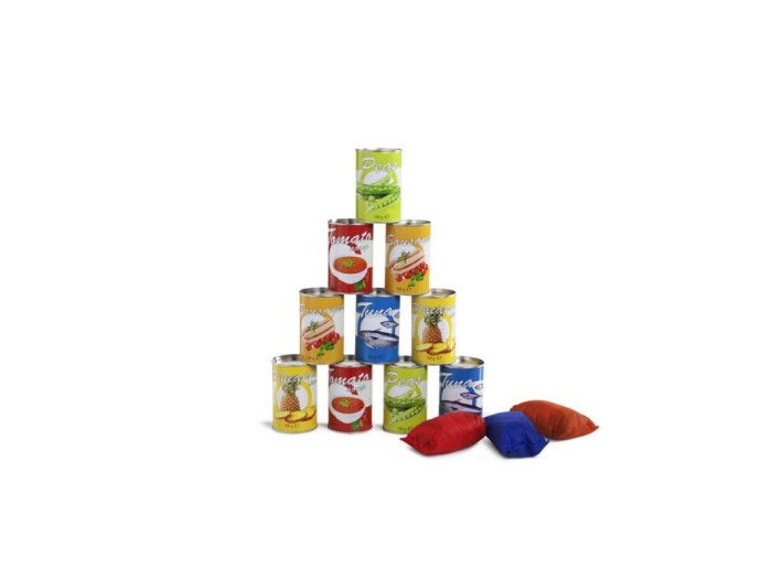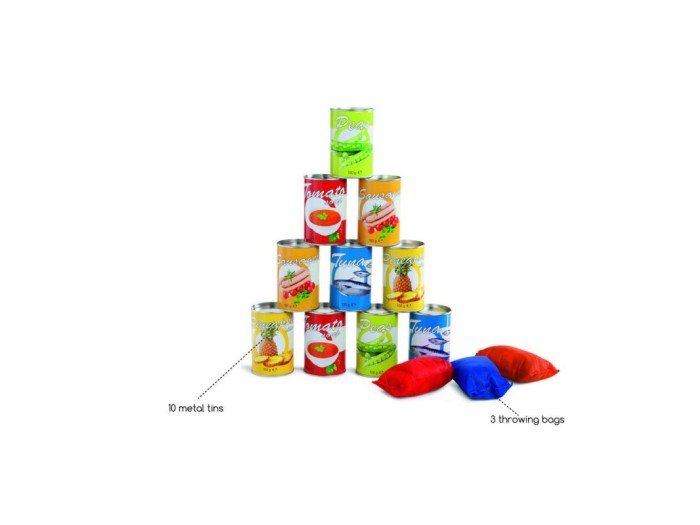 Περιλαμβάνει 10 μεταλλικά τενεκεδάκια και 3 σακουλάκια για ρίψεις.