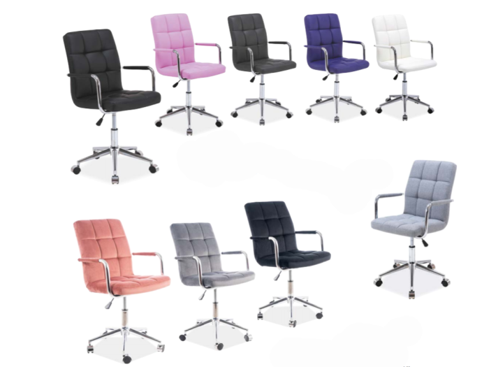 Η πολυθρόνα Q-022 έχει μια σταθερή μεταλλική βάση χρώματος χρωμίου εξοπλισμένη με ένα σύνολο πλαστικών τροχών, χάρη στο οποίο μπορείτε εύκολα να μετακινήσετε την πολυθρόνα και πάνω από χαλιά Δυνατότητα αυξομείωσης ύψους.