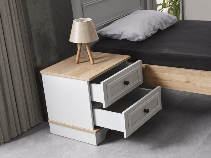 - Λεπτομέρειες/Πρόσοψη: Σκούρο Ανθρακί ή Γκρι (Anthracite), το οποίο χρησιμοποιείται συνήθως στην επιφάνεια των συρταριών ή στον σκελετό για να δημιουργεί αντίθεση.