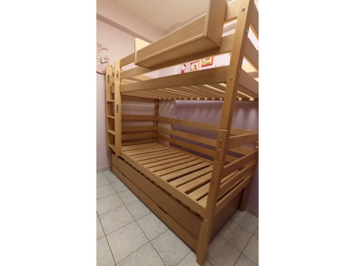 Είναι μία στιβαρή κατασκευή που περιλαμβάνει τρία κρεβάτια, με το τρίτο να είναι συρόμενο και δύο συρτάρια αποθήκευσης για να είναι τα παιχνίδια και τα ρούχα να είναι πάντα τακτοποιημένα.