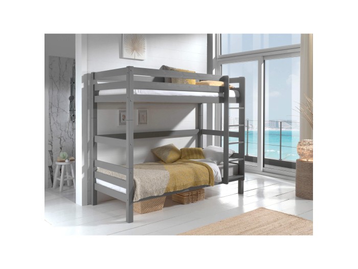 Παιδική-εφηβική κουκέτα Pino High-Bunk. Μια κομψή και εξαιρετικά σταθερή κουκέτα κατασκευασμένη από συμπαγές ξύλο πεύκου σε χρώμα Γκρί