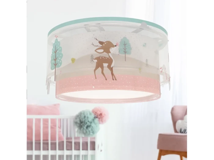 Παιδικό φωτιστικό οροφής τύπου πλαφονιέρα κατάλληλο για γενικό φωτισμό και όλες τις δραστηριότητες των παιδιών. Η Loving Deer πλαφονιέρα οροφής είναι κατασκευασμένη από άκαυστο λεπτό πολυπροπυλένιο σε απαλά χρώματα. Τοποθετείται εύκολα και γρήγορα και είναι εφοδιασμένη με δύο θέσεις λαμπτήρων LED για πραγματικά άπλετο φως στο δωμάτιο.  Παρέχεται διαχυτής φωτός για τις μικρότερες ηλικίες που προσφέρει ομοιόμορφο φωτισμό αλλά και προστασία.  Κατασκευασμένη εξ ολοκλήρου στην Ευρώπη η Loving Deer πλαφονιέρα πλαφονιέρα οροφής τοποθετείται εύκολα με σύστημα click and go.
