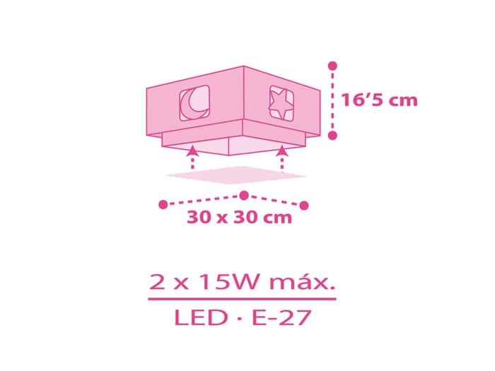Παιδικό φωτιστικό οροφής τύπου πλαφονιέρα κατάλληλο για γενικό φωτισμό και όλες τις δραστηριότητες των παιδιών. Το Moonlight Pink πλαφονιέρα οροφής είναι διπλού τοιχώματος από άκαυστο λεπτό πολυπροπυλένιο και φωσφορίζοντα στο σκοτάδι εξωτερικά μέρη. Τοποθετείται εύκολα και γρήγορα και είναι εφοδιασμένο με δύο θέσεις λαμπτήρων LED για πραγματικά άπλετο φως στο δωμάτιο. Παρέχεται διαχυτής φωτός για τις μικρότερες ηλικίες που προσφέρει