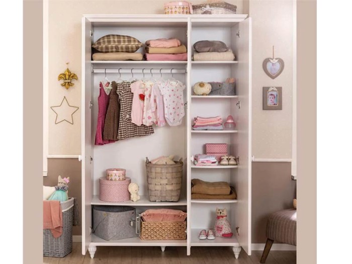 Τρίφυλλη παιδική-εφηβική ντουλάπα από την σειρά Romantic με τους πολύ μεγάλους αποθηκευτικούς χώρους της και ράφια. Πραγματικά θα σας λύσουν τα χέρια, θα μπορέσετε να ταξινομήσετε υπέροχα όλα σας τα ρούχα και τα προσωπικά σας αντικείμενα.