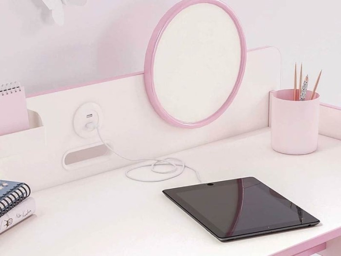 Ένα υπέροχο γραφείο για τις μικρές μας φίλες, στολισμένο με μια υπέροχη κορνίζα, το γραφείο διαθέτει θήκες και φόρτιση USB για το πρώτο σας Tablet ή κινητό.