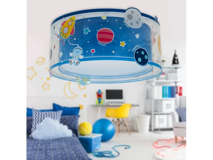 Εμπνεύστε το παιδί σας μέσα από τον μαγικό κόσμο του διαστήματος με το Planets πλαφονιέρα οροφής κατάλληλο για γενικό φωτισμό και όλες τις δραστηριότητες του. Είναι διπλού τοιχώματος από άκαυστο λεπτό πολυπροπυλένιο και φωσφορίζοντα στο σκοτάδι εξωτερικά μέρη. Το Planets πλαφονιέρα οροφής τοποθετείται εύκολα και γρήγορα και είναι εφοδιασμένο με δύο θέσεις λαμπτήρων LED για πραγματικά άπλετο φως στο δωμάτιο.  Παρέχεται διαχυτής φωτός για τις μικρότερες ηλικίες που προσφέρει ομοιόμορφο φωτισμό αλλά και προστασία.  Κατασκευασμένη στην Ευρώπη, τοποθετείται εύκολα με το σύστημα click and go και συμπληρώνει τα υπόλοιπα παιδικά φωτιστικά της συλλογής κομοδίνου ή απλίκα.