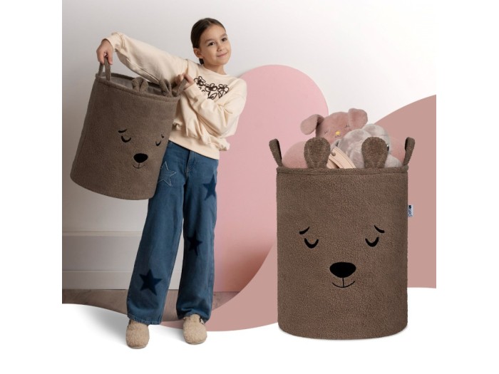 Με χωρητικότητα 43 λίτρων, το καλάθι είναι ιδανικό για χρήση στο παιδικό δωμάτιο, το σαλόνι, την κρεβατοκάμαρα ή το μπάνιο — παρέχοντας βολική αποθήκευση για παιχνίδια, υφάσματα και αξεσουάρ, χωρίς να επιβαρύνει οπτικά τον χώρο. Η εξωτερική στρώση είναι κατασκευασμένη από μαλακό, χνουδωτό ύφασμα μπουκλέ που προκαλεί φυσικά την αλληλεπίδραση. Τα φιλικά σχέδια με θέμα τα ζώα — όπως το αξιολάτρευτο αρκουδάκι — βοηθούν στην καλλιέργεια ενός συναισθηματικού δεσμού με το προϊόν, μετατρέποντας την τακτοποίηση σε παιχνίδι και όχι σε αγγαρεία.